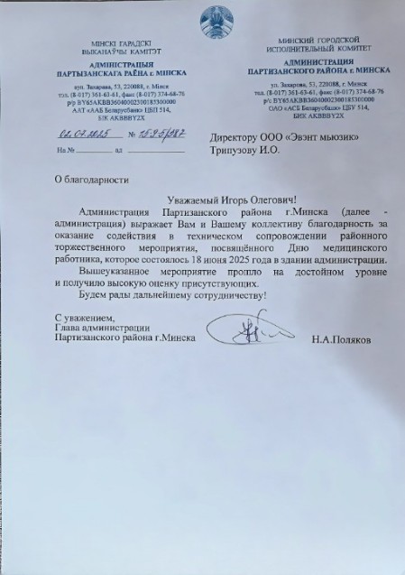 Хочу выразить благодарность Игорю и Юрию за их профессионализм, за помощь с оборудованием на мероприятии в кратчайшие сроки.